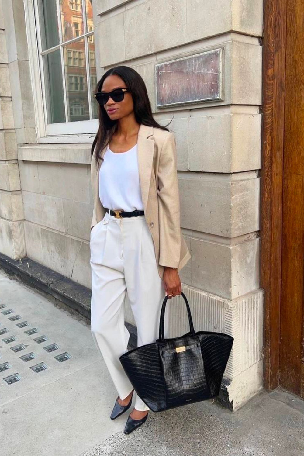 A tailored pant matched with a blazer is classic corporate attire but this look needn't just be reserved for the office. Take your style from corporate to contemporary by pairing this easy look with your favourite sneakers and a classic white t-shirt. In cooler months, adding a baseball cap and trench or overcoat not only adds warmth but a certain nonchalance perfect for the weekend. Ultimate comfort, elevation and style achieved with ease that will take you from running errands to a casual date night. Or for even more relaxed and contemporary styling, replace your blazer with a denim shirt or jacket to add an edge to your look and finish off with your go-to bag and sunglasses.
