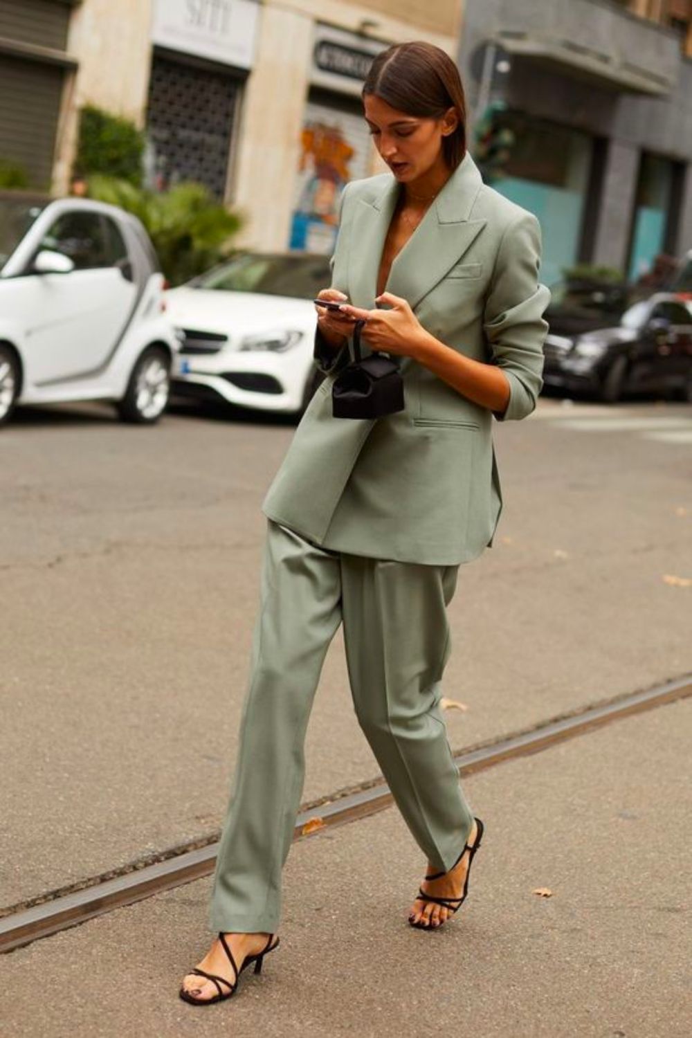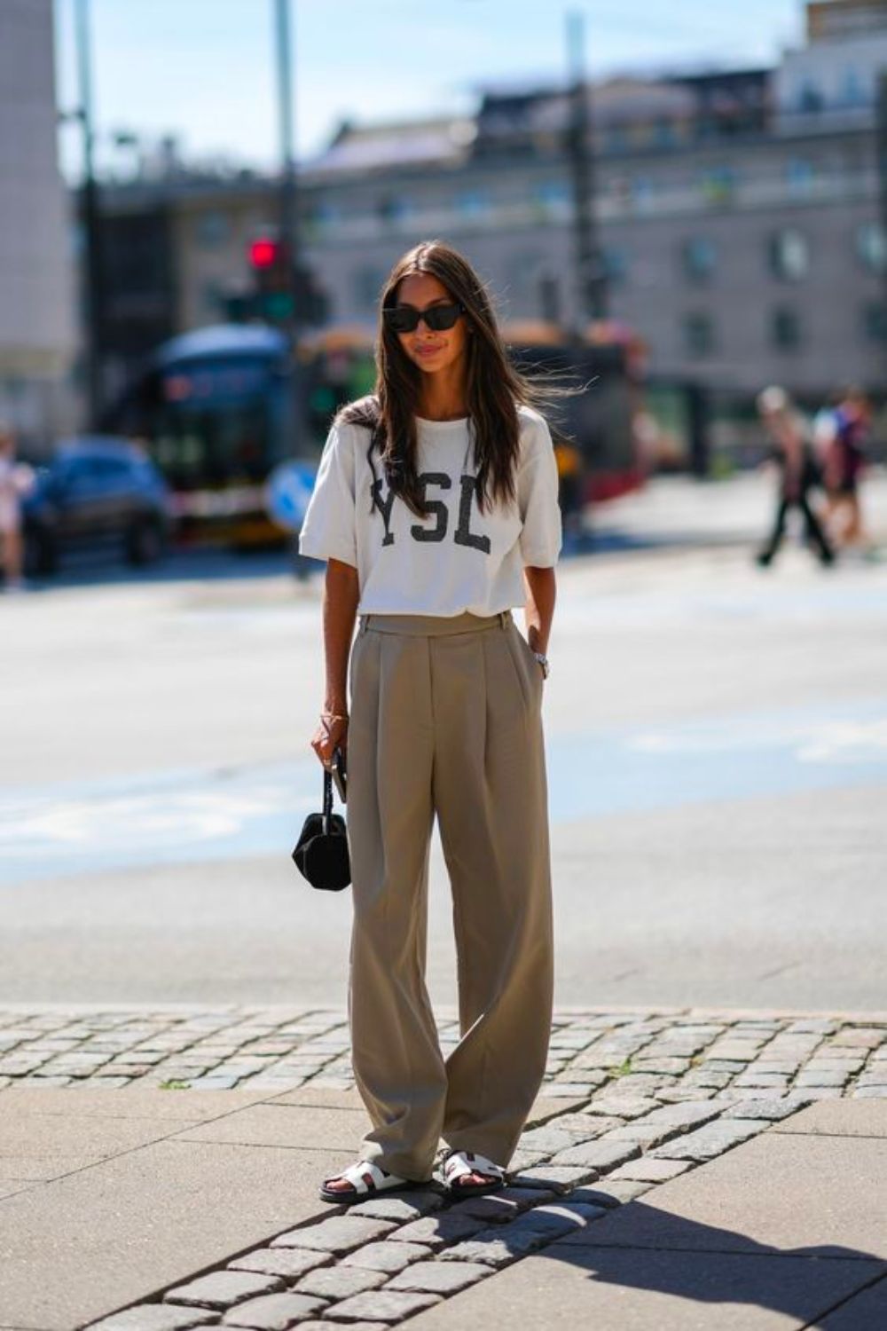 For an evening look to leave others envious of your style, play up the simplicity of well-tailored wide-leg pants by adding a statement blouse, crisp cotton shirting or a bodysuit. Finish your look with a sleek heel and add a classic mini bag for quiet, cool elegance.