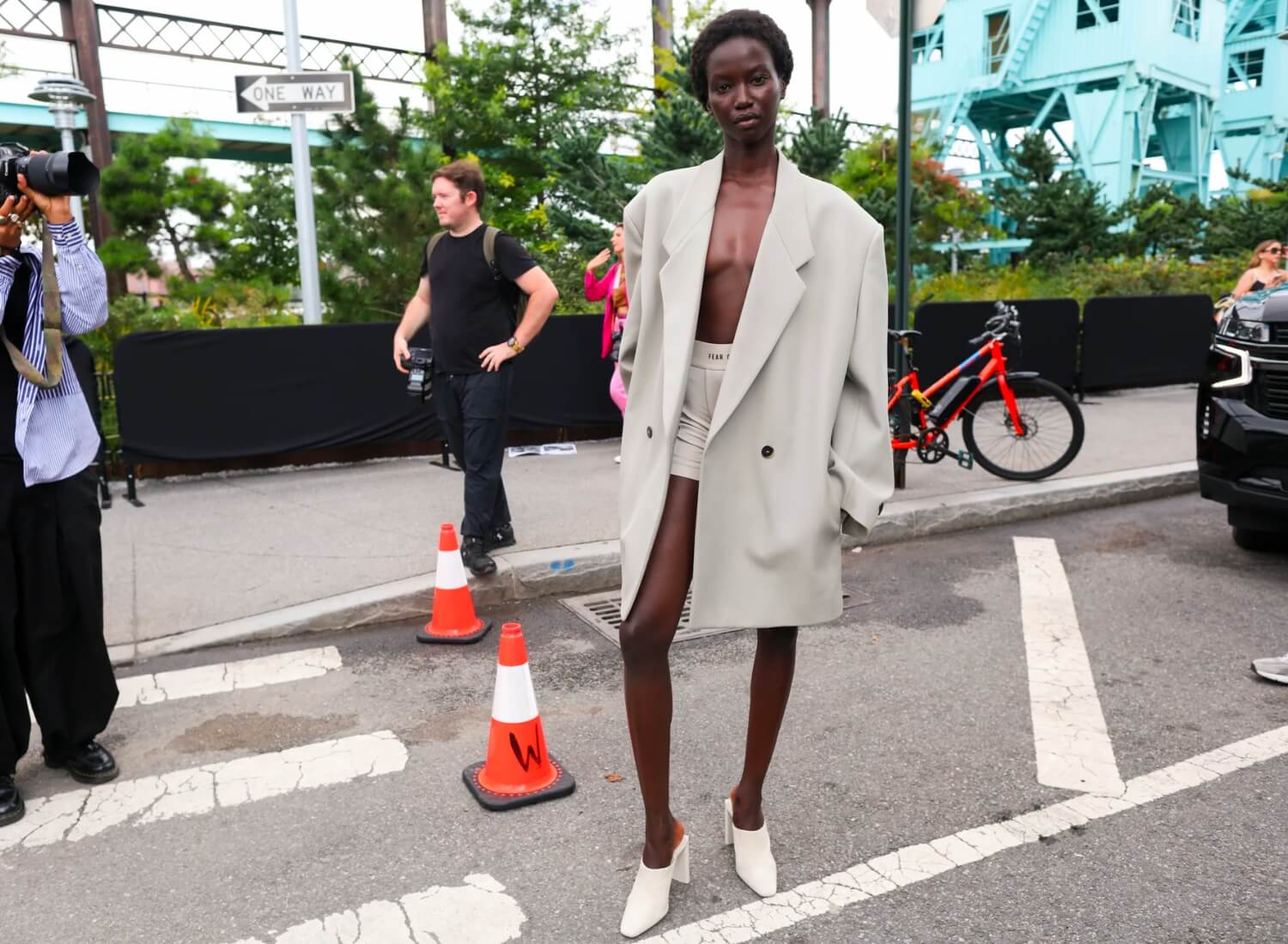Paired with coordinating pants and a simple t-shirt or nonchalantly thrown over perfect party dresses, a well-tailored blazer in a neutral hue was a go to for the street style crowd at NYFW.
