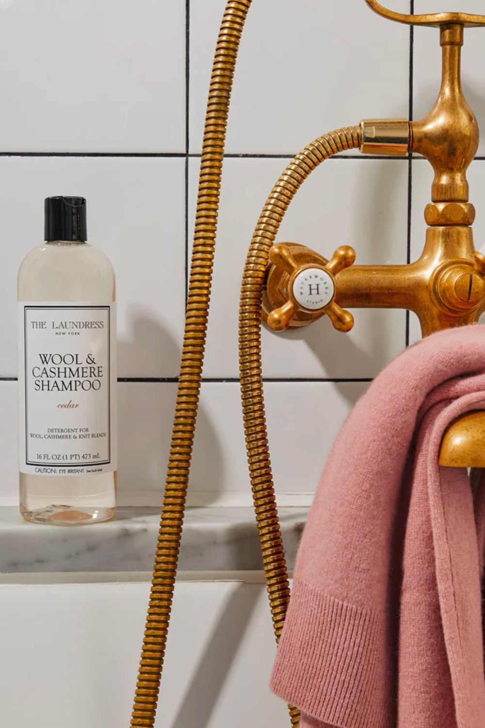 Whether you choose to machine or hand wash your knitwear it is important to use a gentle detergent. When it comes to washing knitwear, less is more. Choose a gentle detergent specifically formulated for delicate fabrics, so as not to damage the fibres or cause shrinkage. Avoid using fabric softeners or bleaches, as they can also harm your knitwear pieces. Wool and cashmere detergents are specially formulated to be gentle and help maintain the softness and shape of knitwear - we love Ecover Wool & Silk Delicate Detergent and The Laundress Wool & Cashmere Shampoo.